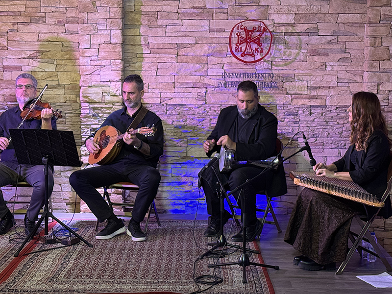 Μουσικό αφιέρωμα, με δημοτικά τραγούδια με θρησκευτικό περιεχόμενο πραγματοποιήθηκε στο Πνευματικό Κέντρο του Ιερού Ναού Ευαγγελιστρίας Πειραιώς, την Πέμπτη 16 Οκτωβρίου, στο πλαίσιο του προγράμματος «ΕΝΟΡΙΑ εν δράσει…».