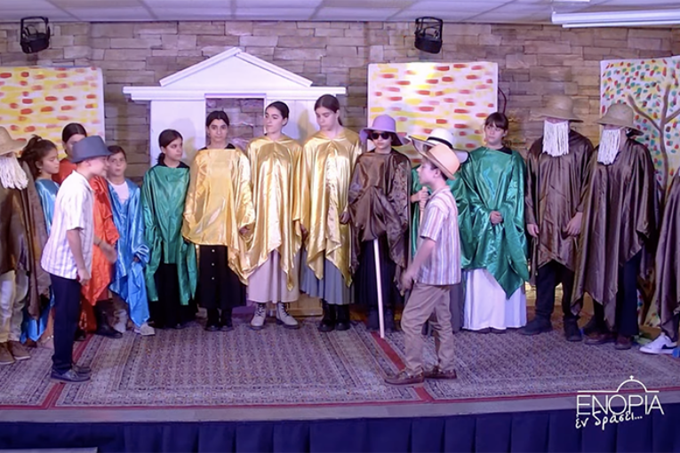 Την κωμωδία του Αριστοφάνη «Οι δημοκράτισσες της αρχαίας Αθήνας» ζωντάνευσαν 18 μικροί ηθοποιοί της Παιδικής Θεατρικής Ομάδας SEMITONO, το Σάββατο 18 Οκτωβρίου, στο πλαίσιο του προγράμματος «ΕΝΟΡΙΑ εν δράσει…» του Ιερού Ναού Ευαγγελιστρίας Πειραιώς.