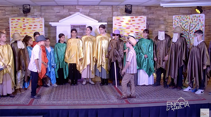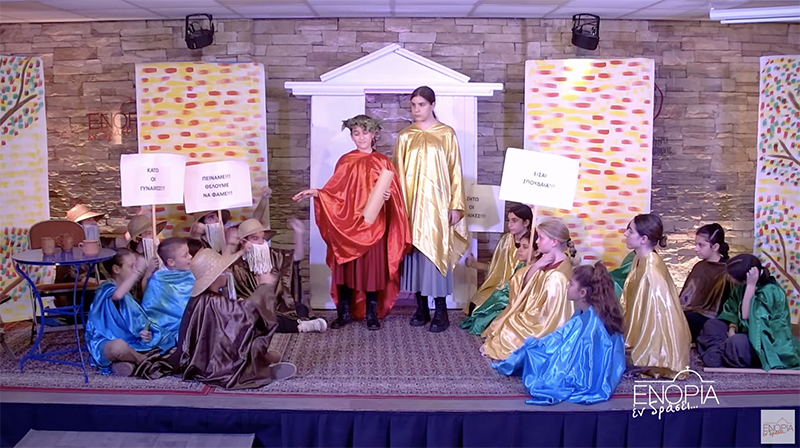 Την κωμωδία του Αριστοφάνη «Οι δημοκράτισσες της αρχαίας Αθήνας» ζωντάνευσαν 18 μικροί ηθοποιοί της Παιδικής Θεατρικής Ομάδας SEMITONO, το Σάββατο 18 Οκτωβρίου, στο πλαίσιο του προγράμματος «ΕΝΟΡΙΑ εν δράσει…» του Ιερού Ναού Ευαγγελιστρίας Πειραιώς.