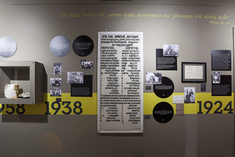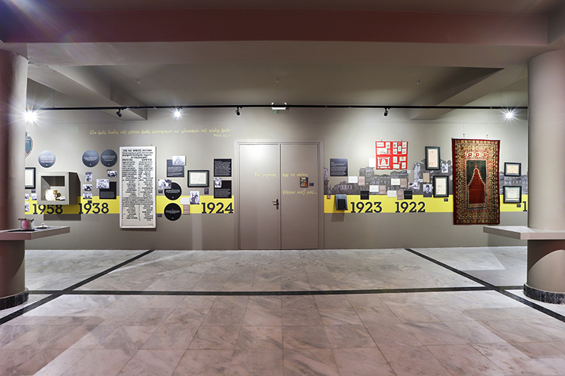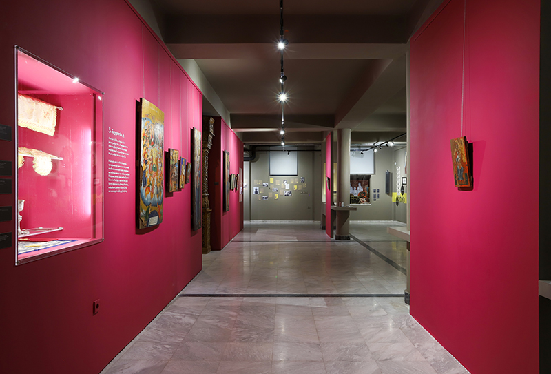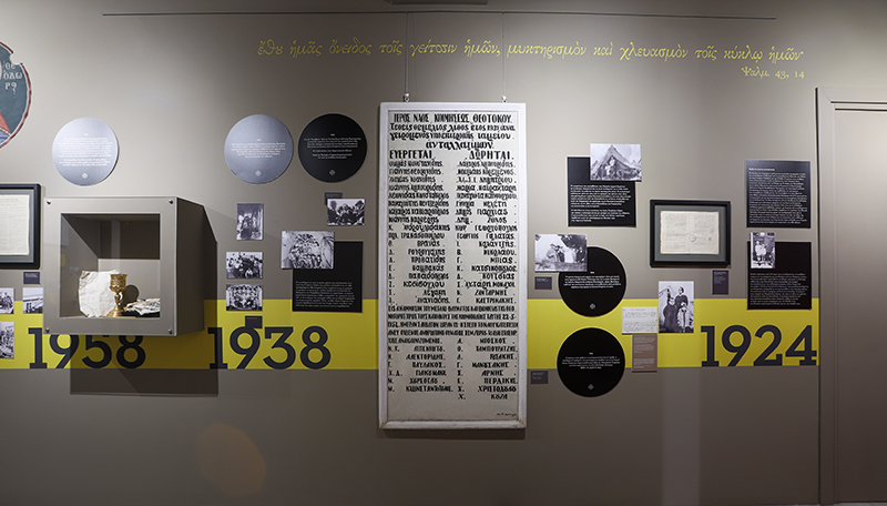 Η ομάδα σχεδίασης έδωσε ιδιαίτερη βαρύτητα στη μουσειολογική ταυτότητα, όπως τόνισε ο π. Χρυσοβαλάντης. Οι τοίχοι βάφτηκαν σε κόκκινο και γκρι, χρώματα που συμβολίζουν αντίστοιχα την εκκλησιαστική και ιστορική διάσταση. Μία κίτρινη γραμμή με χρονολογίες διατρέχει τον χώρο, καθοδηγώντας τον επισκέπτη στη χρονολογική πορεία του τόπου.