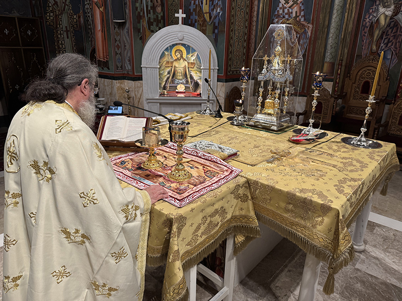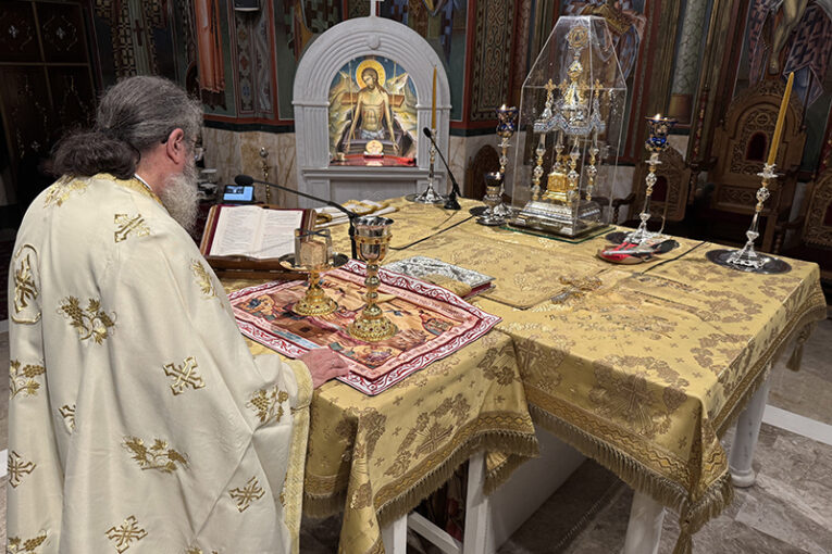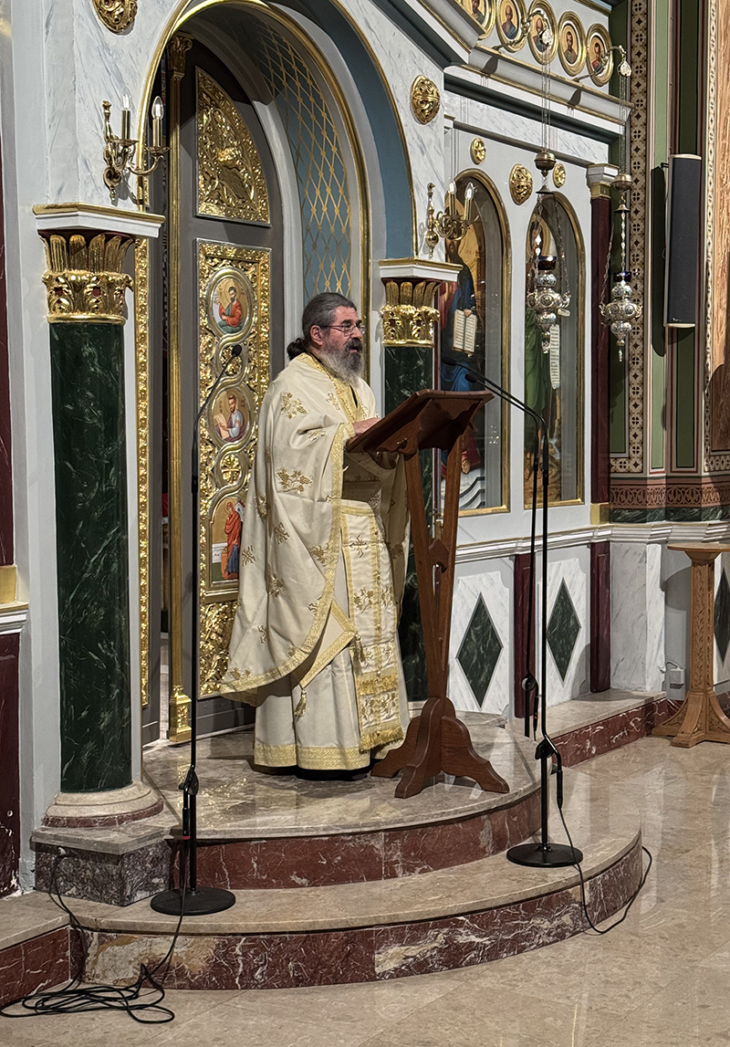 Στο κήρυγμα του ο π. Ευάγγελος έκανε αναφορά στη ζωή και το έργο των τιμωμένων αγίων της ημέρας και ιδιαίτερα στον Όσιο Ιάκωβο της Εύβοιας