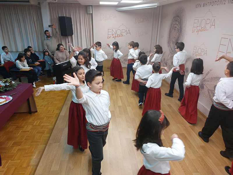 Μαζί τους συμμετείχαν πολλοί γονείς και τα στελέχη του νεανικού έργου της Ενορίας, ενώ τους προσκεκλημένους καλωσόρισε αρχικά ο Εφημέριος του Ναού μας, π. Μαυρουδής Γκούμας, ο οποίος ευλόγησε τη βασιλόπιτα και μοιράστηκε εορταστικές σκέψεις με όλους όσοι συμμετείχαν στην όμορφη εορταστική εκδήλωση.