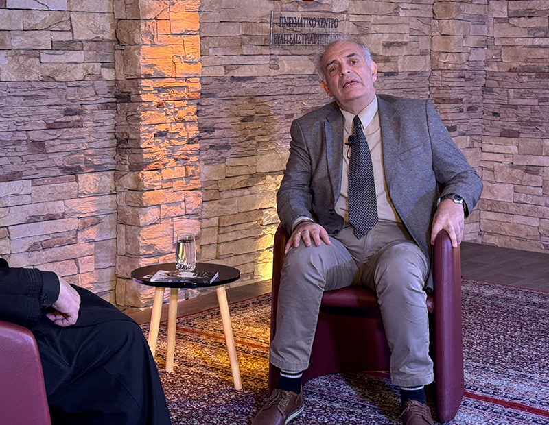 Στο «Ενοριακό Αρχονταρίκι» του Ιερού Ναού Ευαγγελιστρίας Πειραιώς και στο πλαίσιο των εκδηλώσεων «Ευαγγελίστρια 2026», την Τρίτη 3 Μαρτίου ο Ηλίας Λιαμής, Δρ. Θεολογίας – Μουσικολόγος – Συγγραφέας, φιλοξένησε τον Σεβασμιώτατο Μητροπολίτη Αργολίδος κ. Νεκτάριο, σε μια συζήτηση με θέμα «Αγιασμένες μορφές: Όσιος Εφραίμ ο Κατουνακιώτης και Όσιος Παπα-Τύχων ο Αγιορείτης».