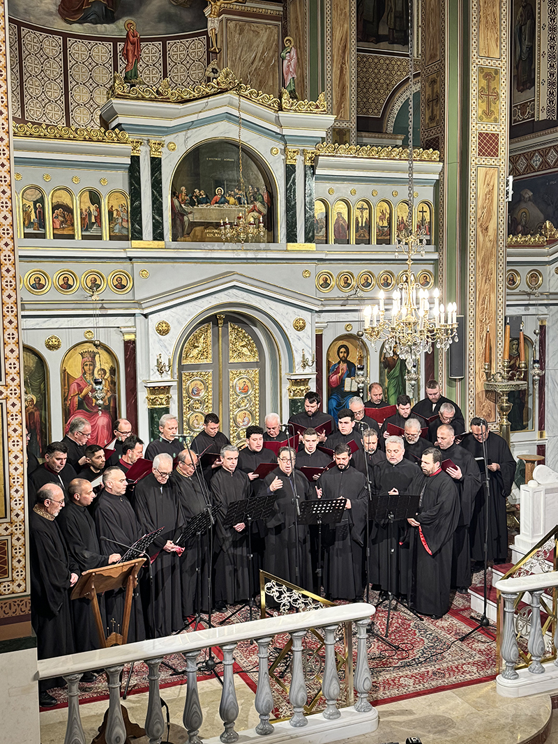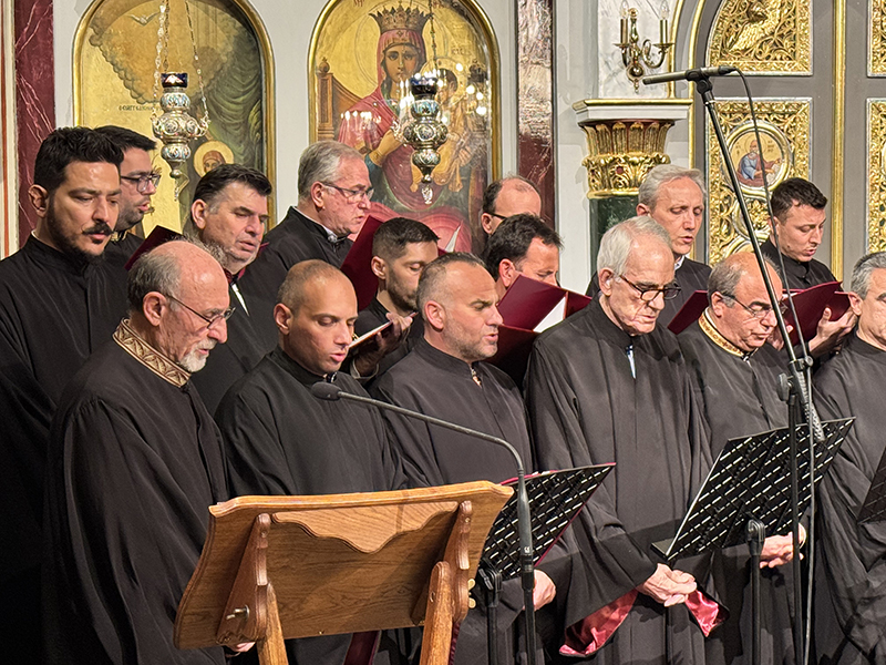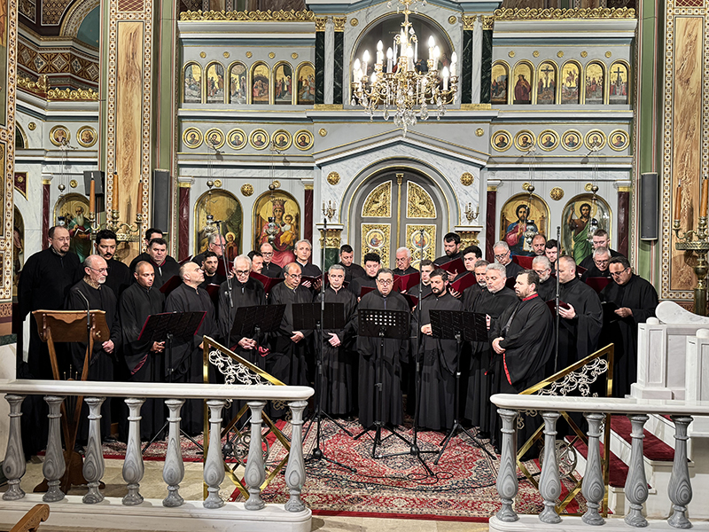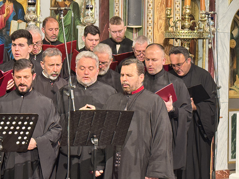 Στην πορεία της Μεγάλης Τεσσαρακοστής σημαντικό σταθμό αποτελεί η Κυριακή της Σταυροπροσκυνήσεως, που βρίσκεται στο μέσο της περιόδου. Η Εκκλησία προβάλλει τον Τίμιο Σταυρό ως πηγή δύναμης και ενίσχυσης για τους πιστούς. Ο Σταυρός, που κάποτε ήταν όργανο βασανισμού και ντροπής, μεταμορφώθηκε μέσω της θυσίας του Χριστού σε σύμβολο σωτηρίας, νίκης και ζωής. Για τους ανθρώπους που περίμεναν έναν ισχυρό και ένδοξο Μεσσία, ο σταυρικός θάνατος του Χριστού φαινόταν σκανδαλώδης· για τους φιλοσόφους ήταν παράλογος. Όμως για τους πιστούς αποτελεί τη δύναμη και τη σοφία του Θεού, καθώς μέσω του Σταυρού ήρθε η χαρά σε ολόκληρο τον κόσμο. Η Χορωδία απέδωσε το Στιχηρό Προσόμοιο του Εσπερινού «Χαίροις ὁ ζωηφόρος Σταυρός…» και το Ιδιόμελον του Κατανυκτικού Εσπερινού της Κυριακής της Σταυροπροσκυνήσεως «Ἀτενίσαι τὸ ὄμμα εἰς οὐρανόν…».