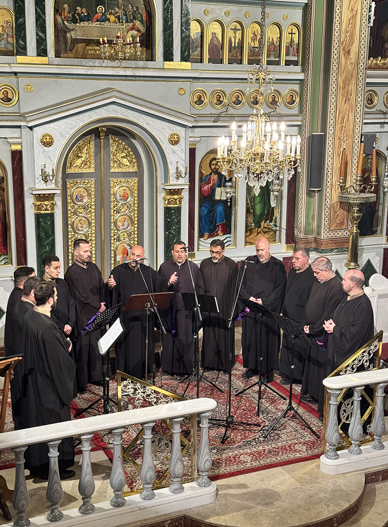 Την Πέμπτη 19 Μαρτίου παρουσιάστηκε το υμνολογικό αφιέρωμα «Νυν αι Δυνάμεις των ουρανών συν ημίν αοράτως λατρεύουσιν…», με ύμνους από την υμνολογία της Προηγιασμένης Θείας Λειτουργίας. Τους ύμνους απέδωσε ο Χορός ψαλτών “Αντιφωνικό Μέλος” με χοράρχη τον Πρωτοψάλτη Γεώργιο Καμαριάρη. Ο Χορός είναι μουσικό σύνολο από καταξιωμένους ιεροψάλτες που διακονούν σε αναλόγια της Ιεράς Αρχιεπισκοπής Αθηνών και των Μητροπόλεων του λεκανοπεδίου Αττικής. Επιδίωξη του Χορού είναι η καλλιέργεια της βυζαντινής μουσικής και ψαλτικής τέχνης, με πολλές συμμετοχές σε συναυλίες και λατρευτικές εκδηλώσεις εντός και εκτός Ελλάδας.